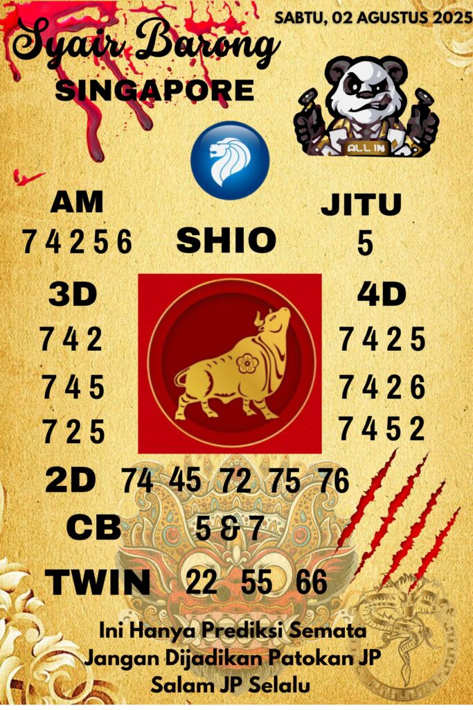 Prediksi DENSUSTOTO menyediakan Syair Togel Singapore resmi yang dapat anda saksikan dalam situs judi togel online ini. Setiap pemain judi togel online yang tidak memandang dan mengenal syair togel singapore pastilah kurang mujur buat mendapati angka keluaran togel terjitu. Lantaran itu sekarang situs judi togel online DENSUS TOTO sekarang akan memberikan anda bocoran bagaimana caranya mendapati nomor keluaran prediksi singapore dari syair togel sgp terjitu. Sekarang anda cuma perlu dan mengenal code syair singapore ini merupakan prediksi singapore yang dituang terdapat sifat code syair. Maka serius tidak bertanya-tanya jikalau sejumlah penggemar togel begitu menyintai prediksi syair togel ini. Buat prediksi syair singapore dapat dipakai buat bahan ketidaksamaan mencari angka jitu yang bisa keluar pada hari ini. Karenanya berhati-hatilah selalu pada setiap terdapat dipicu di situ dapat anda angka bermain 2D, 3D dan 4D.